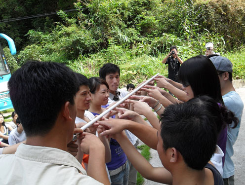 這是一個考察團(tuán)隊是否同心協(xié)力的體驗。在所有學(xué)員手指上的同心桿將按照培訓(xùn)師的要求,完成一個看似簡單但卻最容易出現(xiàn)失誤的項目。此活動深刻揭示了企業(yè)內(nèi)部的協(xié)調(diào)配合之問題。