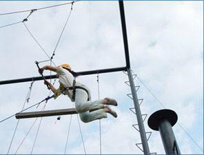 項目名稱:空中抓杠[高空項目] 項目簡介: 參與者站在離地7米的空中,在前方一臂以外的空中,懸著一根單杠。參與者要做的,是從跳臺上凌空躍起,抓住那根單杠。 項目意義: 建立臨危不懼的自信心,挖掘自身的潛力,挑戰自我。培養心理調節能力,增加自我控制能力和自我管理能力。勇于把握機遇。